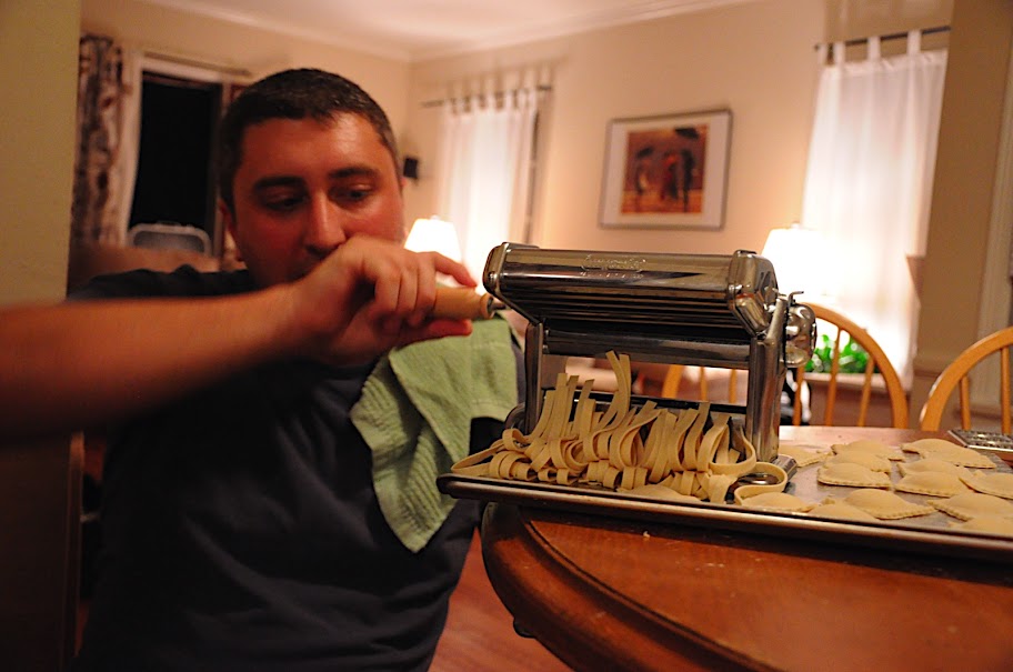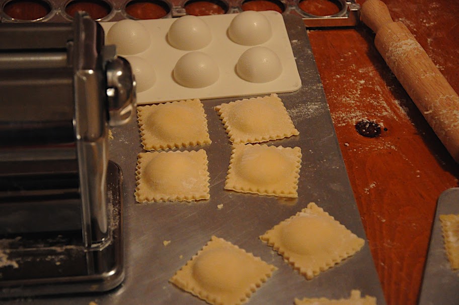 Jeff and I have been meaning to do this for a while, and finally on Saturday we just did it. We got a pasta machine for Christmas and I got Jeff a ravioli maker. Here’s what we came up with.